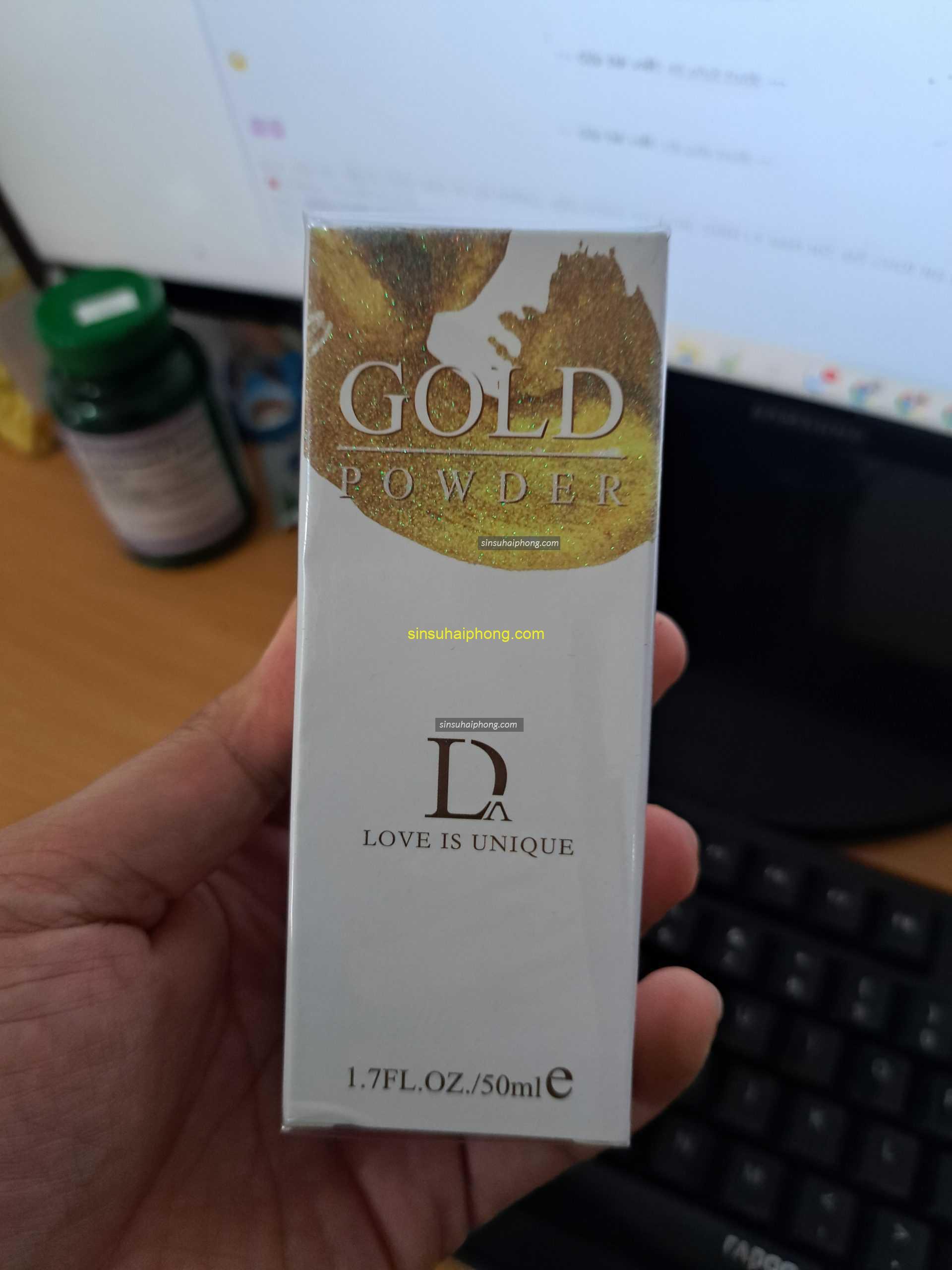 Nước hoa kích thích Gold Powder tăng khoái cảm trong tình yêu, tạo hưng phấn và bắt đầu nhập cuộc quan hệ mạnh mẽ, mạnh mẽ. Cơ chế tự nhiên thành phần chủ yếu là Pheromone được tiết ra từ cơ thể giống với thành phần nước hoa kích thích hương thơm thoải mái dễ dàng sử dụng, được sản sinh ra nhiều hoocmon kích thích các cơ quan nhạy cảm trong cơ thể, nhất là cơ quan sinh dục.